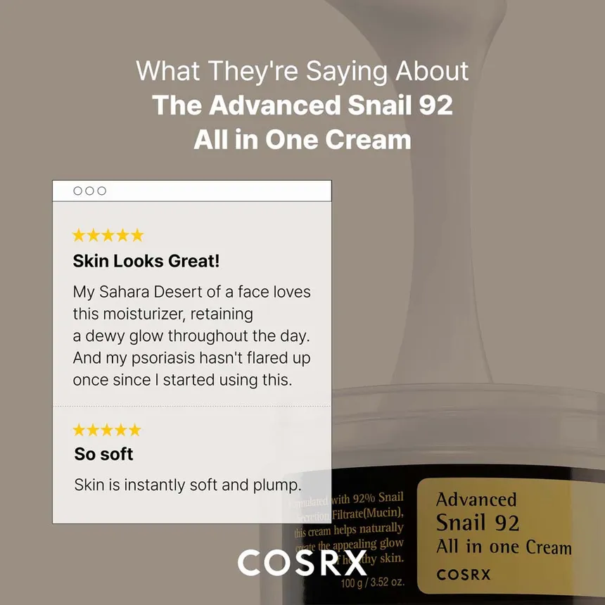 كريم خفيف يحتوي على 92% من خلاصة إفرازات الحلزون، يرطب البشرة بعمق، يهدئ التهيج، ويساعد على إصلاح التلف دون ملمس لزج. يقلل الخطوط الدقيقة ويمنح البشرة مظهراً صحياً ومشرقاً.