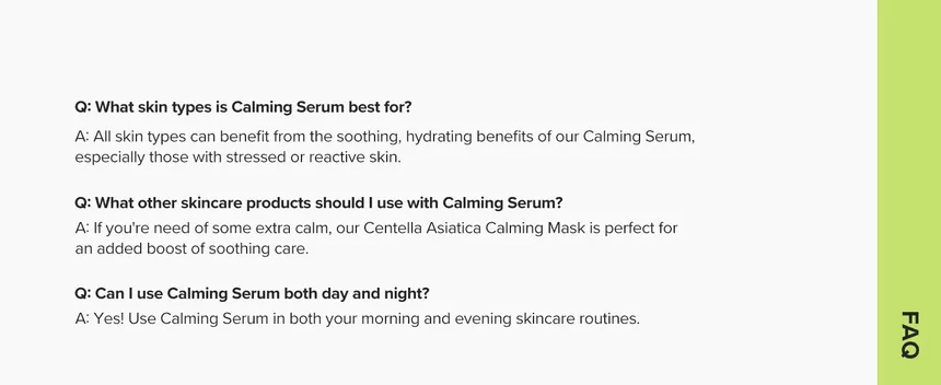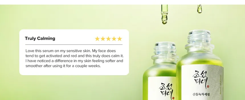 سيروم مهدئ بتركيبة غنية بالشاي الأخضر والماغورت مع بانثينول، يهدئ البشرة الحساسة والمتضررة، يرطبها بعمق، ويقوي حاجز الرطوبة لمنح إحساس فوري بالراحة والانتعاش.