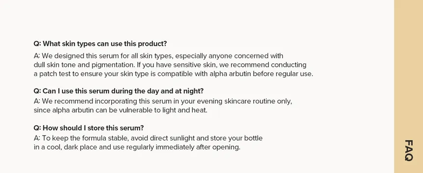 سيروم تفتيح وإشراقة بتركيبة غنية تحتوي على ماء نخالة الأرز وألفا أربوتين، يساعد على تقليل التصبغات وتوحيد لون البشرة، مع ترطيب طويل الأمد وقوام خفيف سريع الامتصاص مناسب للبشرة الحساسة.