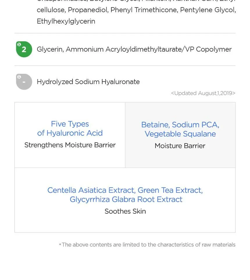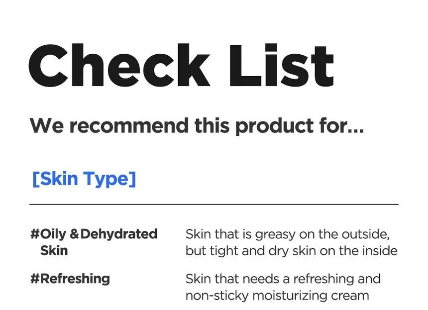 كريم جل مائي مرطب يحتوي على 5 أنواع من حمض الهيالورونيك، يوفر ترطيبًا مكثفًا ومنعشًا دون ملمس دهني، مع مكونات مهدئة تحسّن ملمس البشرة وتمنع الجفاف. مثالي للبشرة الدهنية والمختلطة.