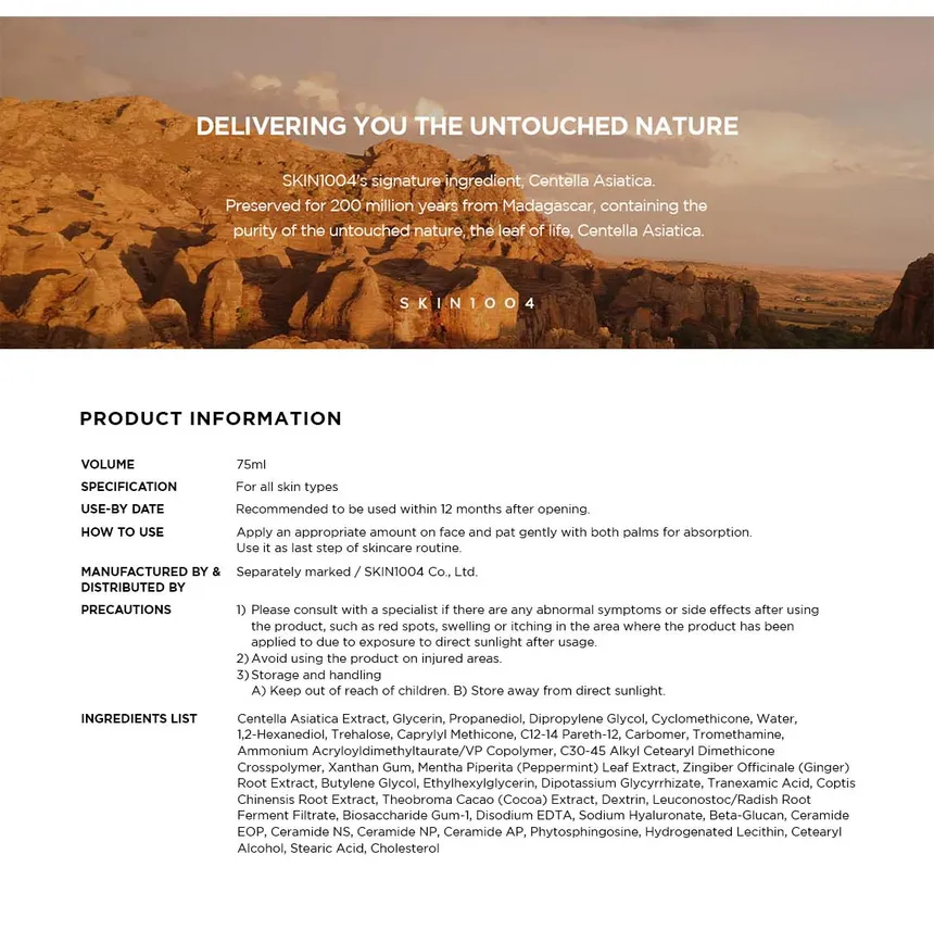 كريم مهدئ ومرطب يحتوي على 72% من خلاصة سنتيلا آسياتيكا من مدغشقر مع 4 أنواع من السيراميد النباتي، يهدئ البشرة الحساسة، يقوي حاجز الجلد، ويمنح ترطيبًا منعشًا بملمس جل خفيف سريع الامتصاص.
