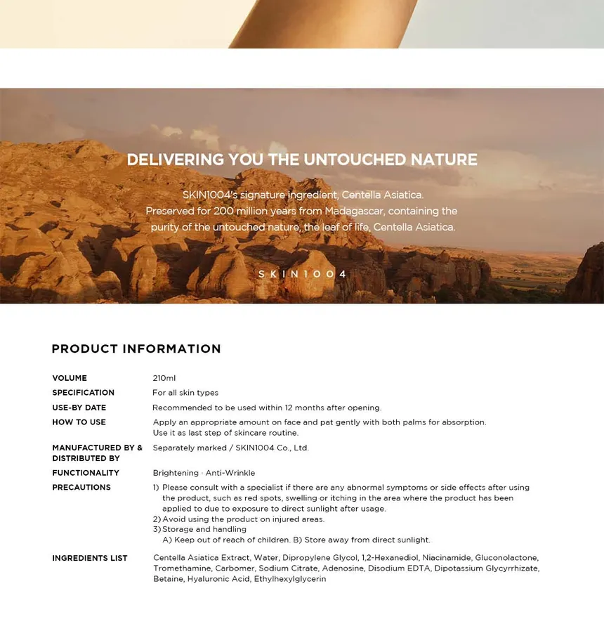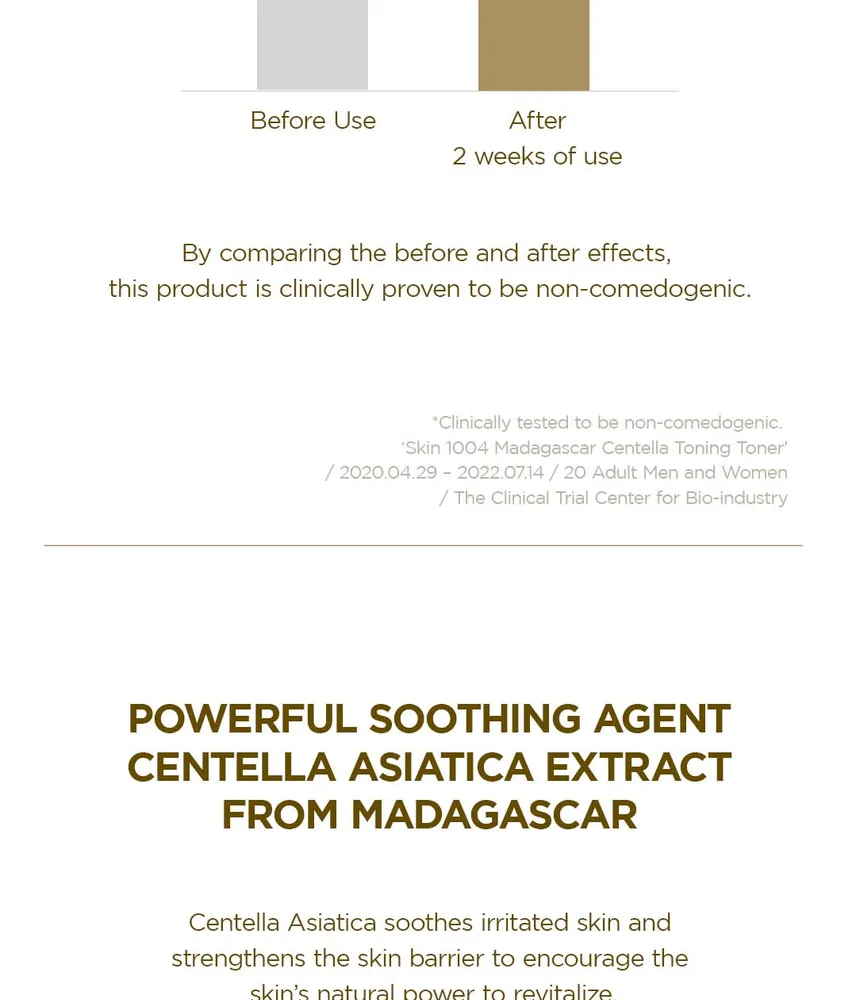تونر لطيف يحتوي على 84% من خلاصة سنتيلا آسياتيكا من مدغشقر مع أحماض PHA لتقشير خفيف، يرطب ويهدئ البشرة، يحسّن الملمس، ويوحّد اللون لمنح بشرة ناعمة ومشرقة.