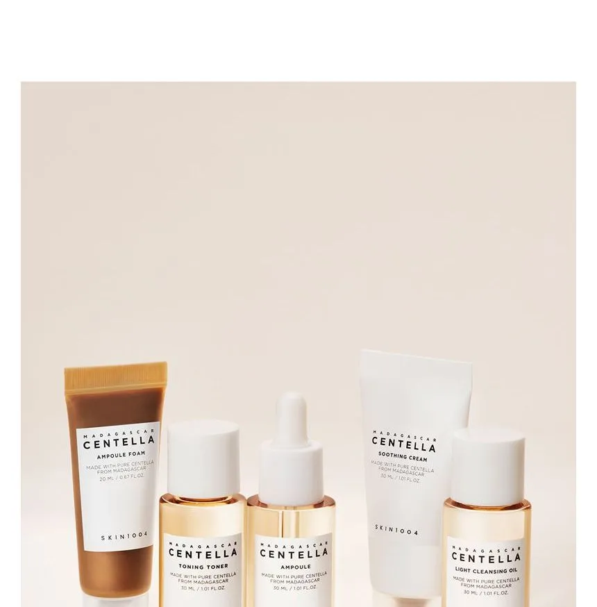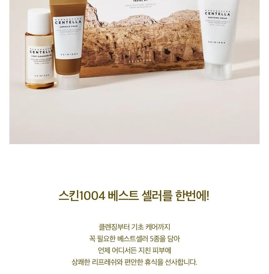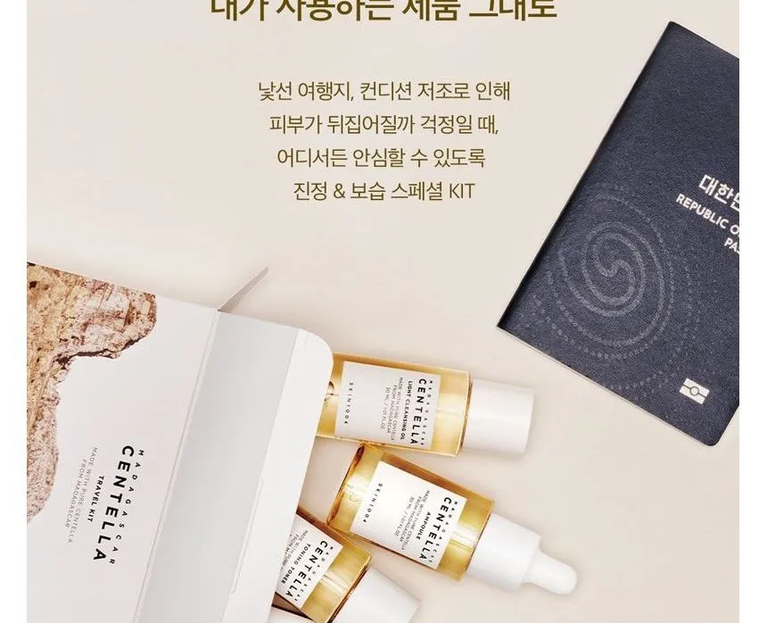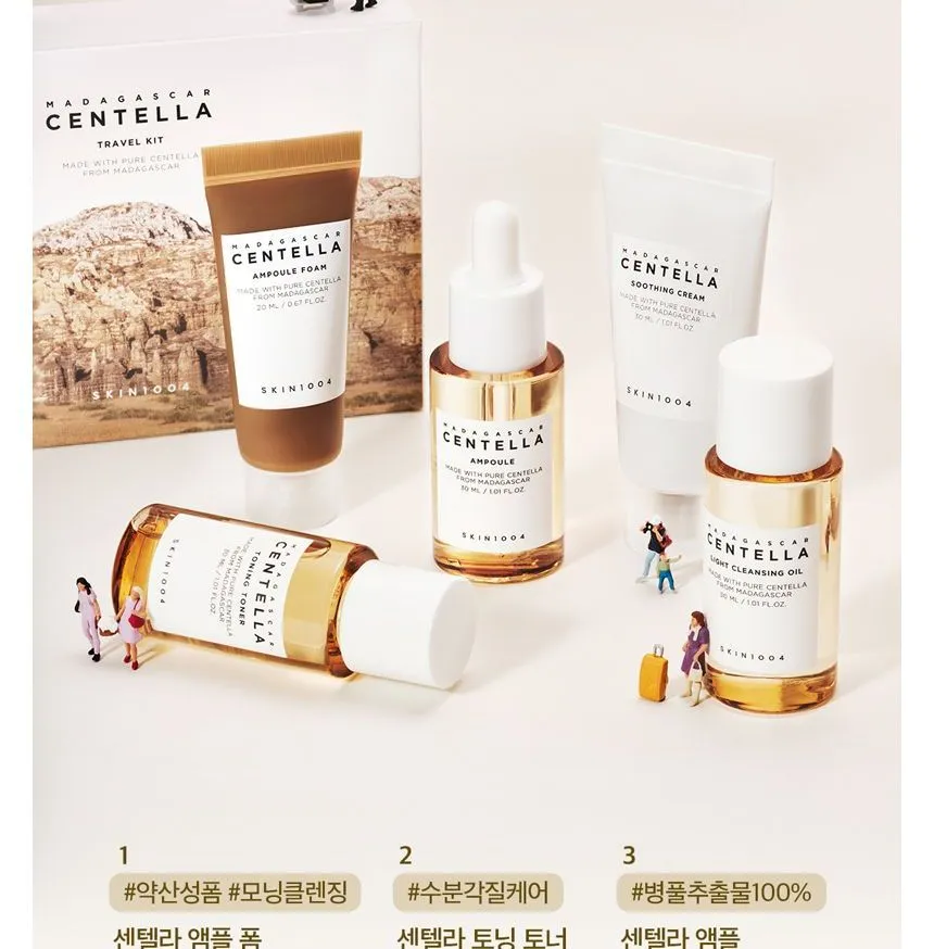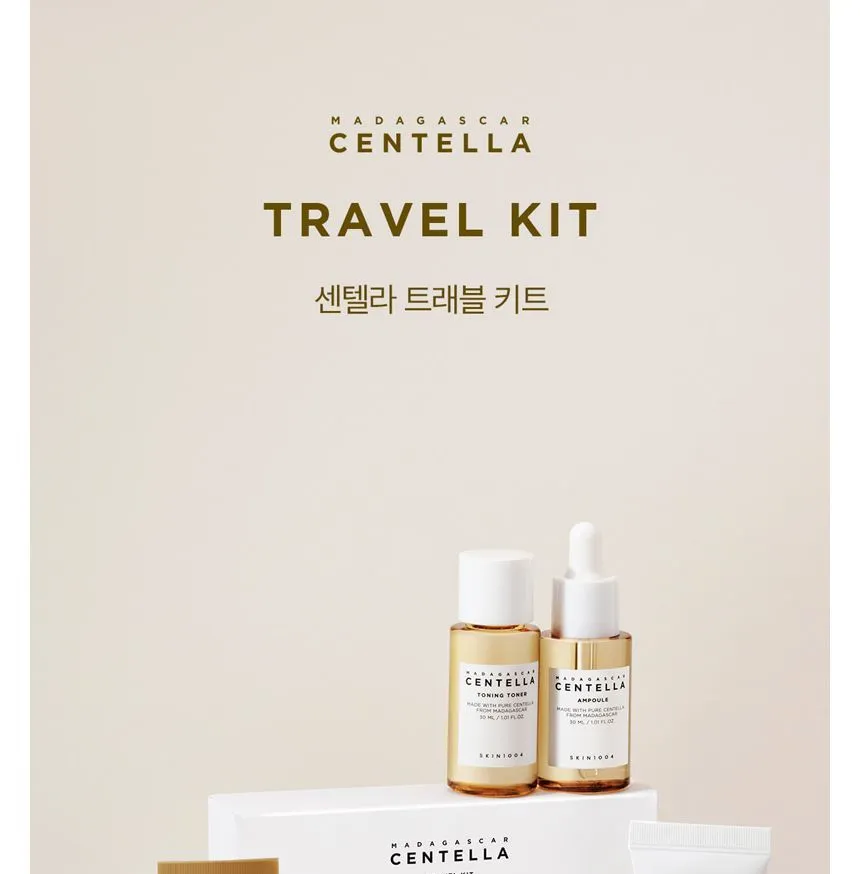 مجموعة سفر متكاملة بخلاصة سنتيلا آسياتيكا من مدغشقر، تضم 5 منتجات أساسية بأحجام مناسبة للحقيبة. تنظف البشرة، ترطبها، تهدئها، وتقوي حاجزها الطبيعي، مثالية للسفر أو الاستخدام اليومي.